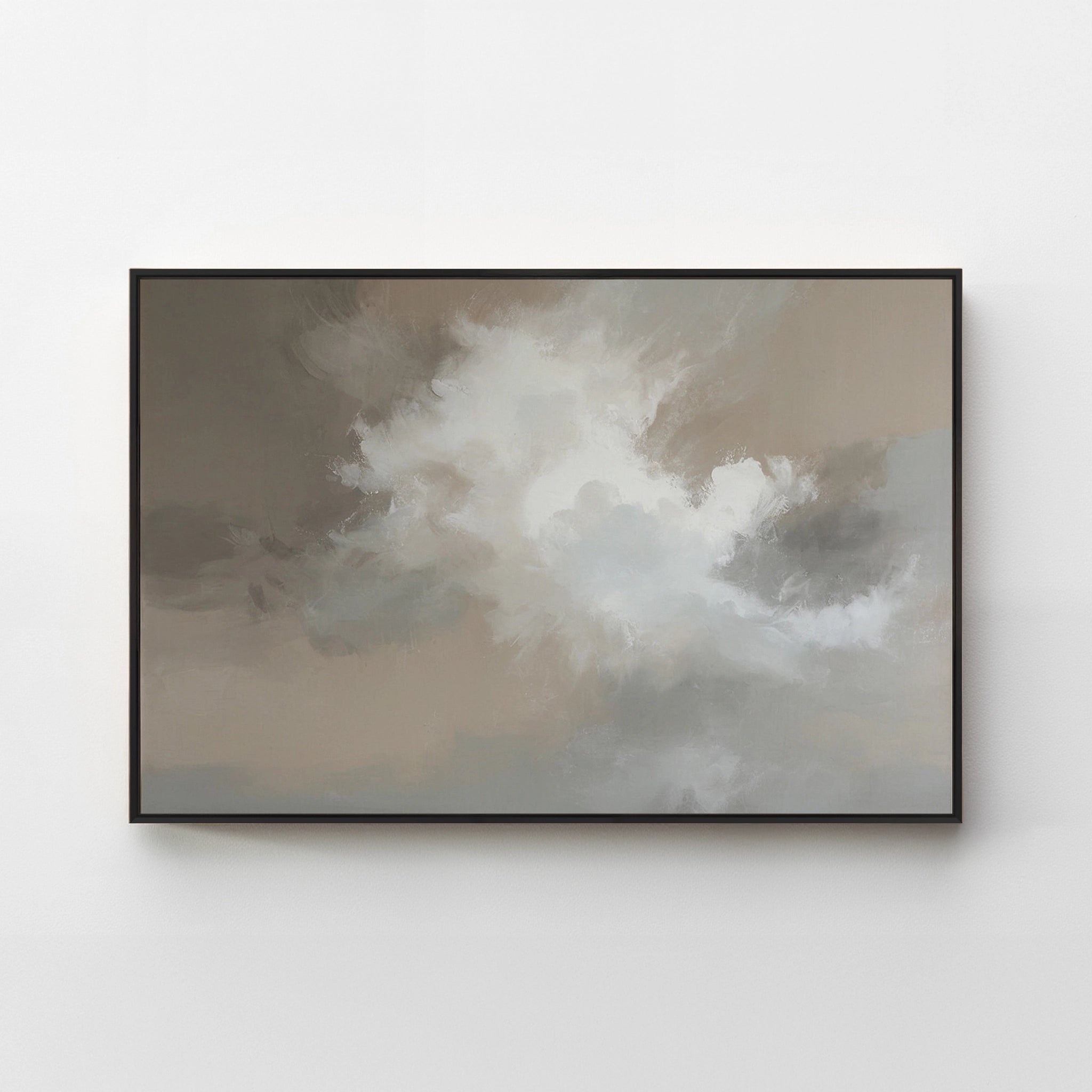 Soft cloudlike forms drift through muted taupe and grey tones, creating a tranquil composition that evokes calm and space. This oil painting brings a sense of serenity and openness, ideal for minimalist or contemporary interiors. Available as a hand-painted oil painting or high-quality canvas print.